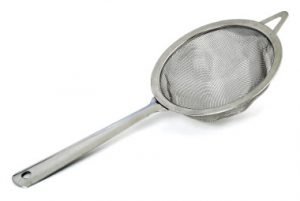 Um das Aroma vernünftig zu reinigen, habe ich mich für eine zweistufige Filderung entschlossen. Die erste Filterung erfolgte duch einen Nylon-Damenstrumpf (selbstverständlich neu und ungetragen, es ging mir ja um das reine Popcorn-Aroma 😉 ).