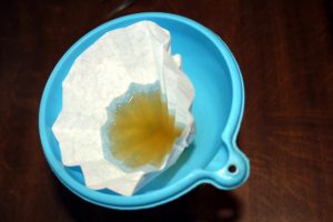 Die zweite Filterung habe ich dann, wie beim Tabakextrakt, durch einen feinen Kaffeefilter gemacht, den ich zuvor gefaltet habe, um den Vorgang ein wenig zu beschleunigen.