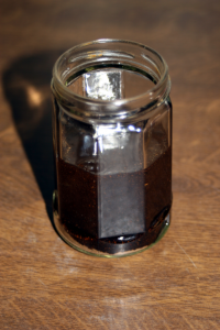 Weitere zwei Wochen habe ich den Ansatz dann völlig in Ruhe gelassen, um dem Pulver die Möglichkeit zu geben, sich am Boden des Glases abzusetzen.