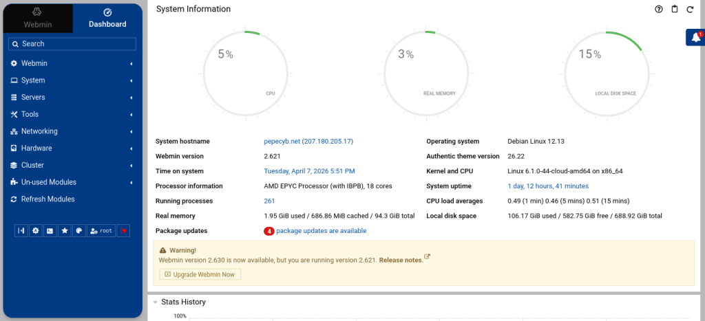 Screenshot 2026-04-07 at 17-52-09 (1) Dashboard — Webmin 2.621 (Debian Linux 12.13).png